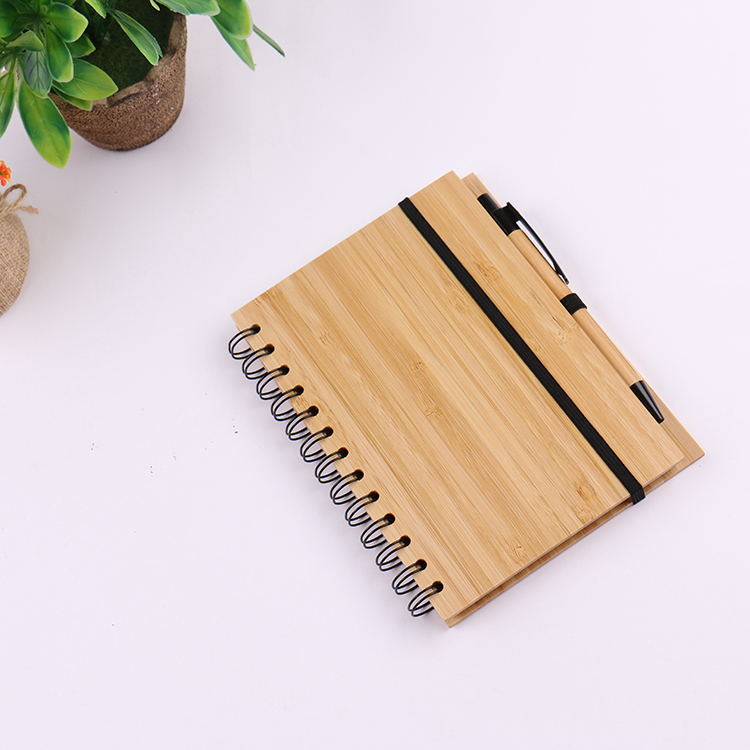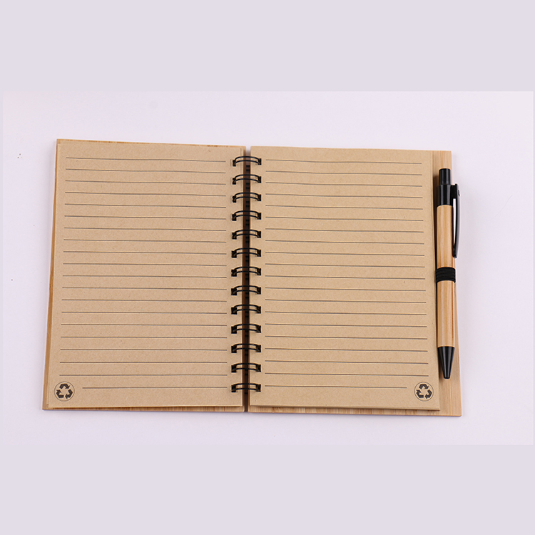 1. This is a set of eco-friendly bamboo wooden cover notebooks with a bamboo ink-less pen