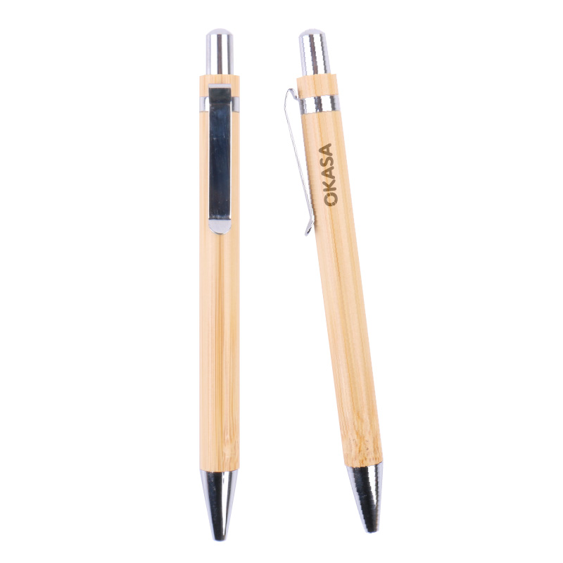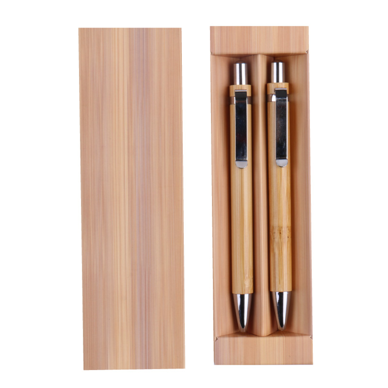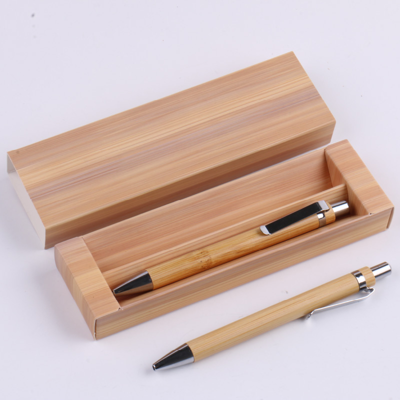 1. Push action bamboo barrel, metal clip ballpoint pen in an elegant bamboo box perfect as a gift set.