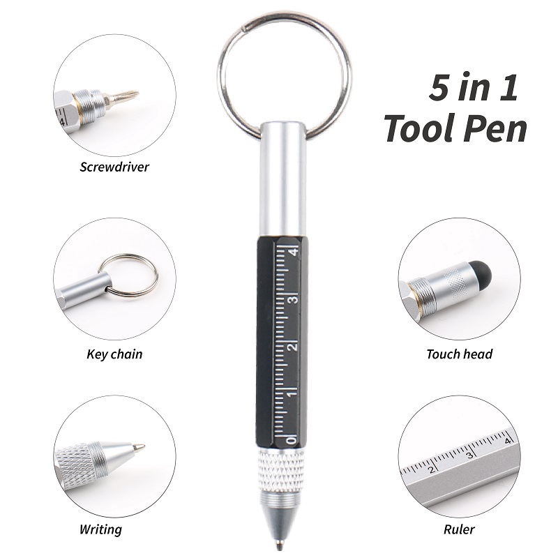1. Multifunction pen tool features a handy tablet or smartphone stylus, a sturdy screwdriver, keyring, a universal cm ruler