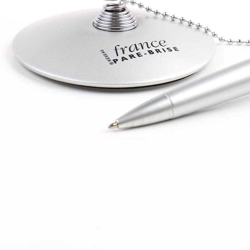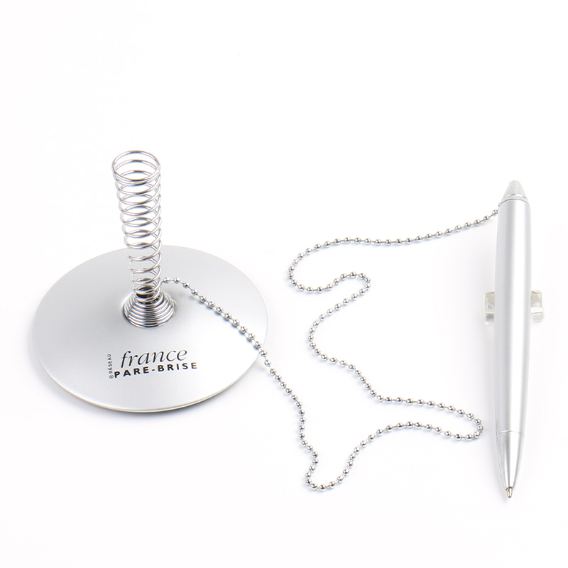 2. Metal ball pen made by Okasa features a Bead chain and the string stand