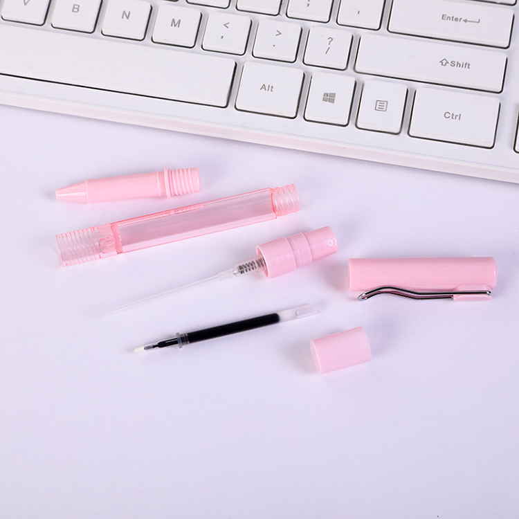2. The Stylish ballpoint pen for writing, a spray bottle with a small capacity and can be clipped in the front pocket.