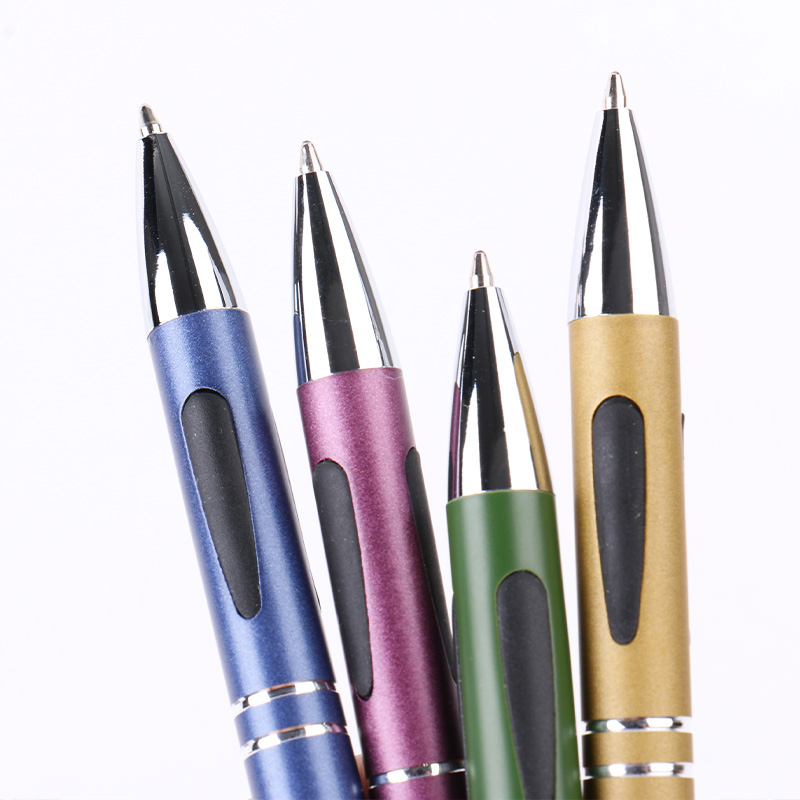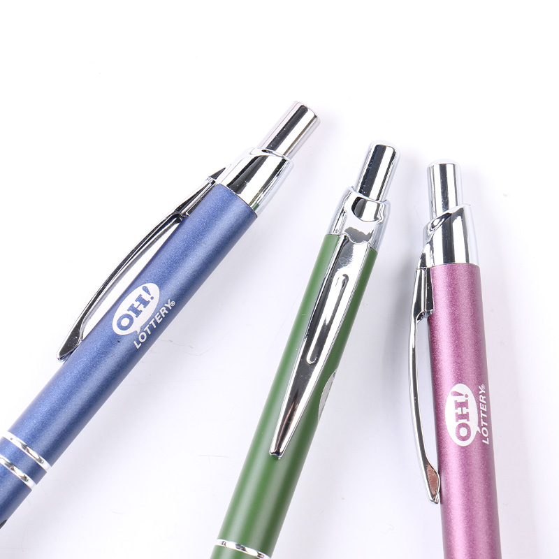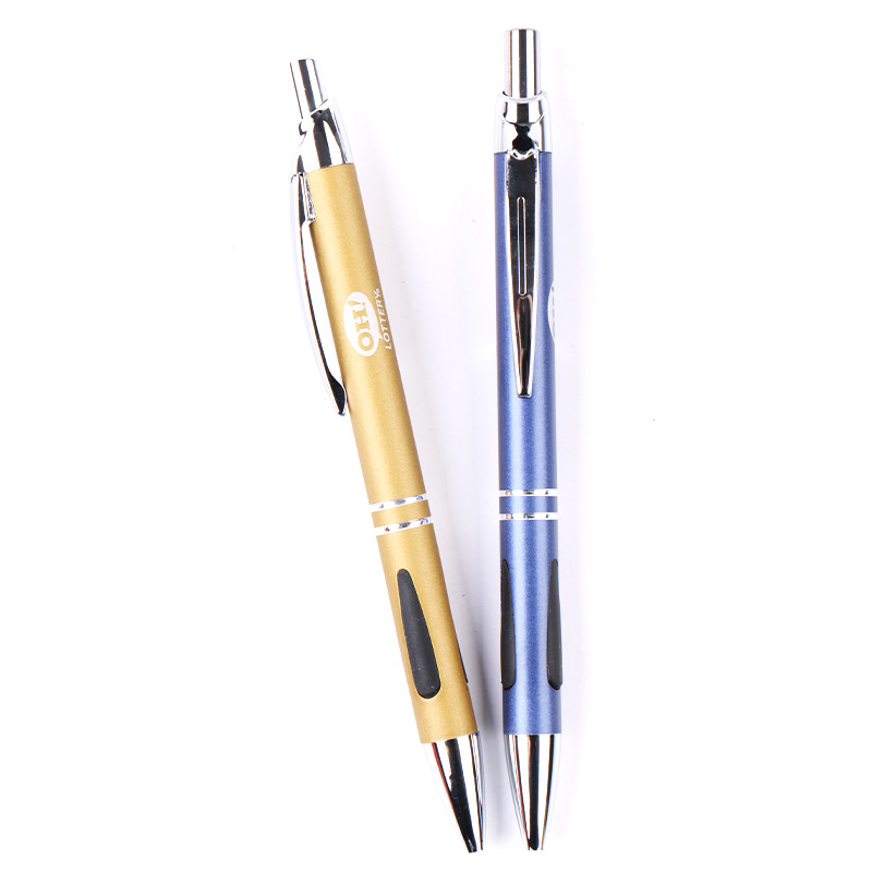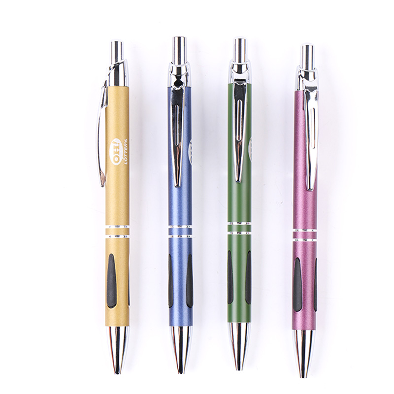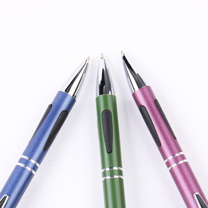 3. Push-action metal pen, with a metal clip and the grip pad on the barrel